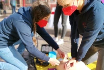 Jedes Jahr am 16. Oktober ist der World Restart A Heart Day des European Resuscitation Council. Dieses Jahr haben unsere Tutoren und Tutorinnen zu diesem Anlass auf dem Uniplatz zusammen mit der Sektion Notfallmedizin und Pflegenden des Uniklinikums unter dem Motto "Prüfen - Rufen - Drücken" darauf aufmerksam gemacht, dass jeder im Notfall mit der Herzdruckmassage Leben retten kann. Zahlreiche Passanten konnten direkt vor Ort ihr Wissen auffrischen oder zum ersten Mal den Basic Life Support erlernen und all ihre Fragen stellen.