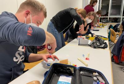 Am 01.03.2022 haben knapp 20 unserer Tutoren an einer Fortbildung zur korrekten Handhabe von EZ-IO-Bohrern für die Anlage eines intraossären Zugangs teilgenommen. Ein wichtiger Skill für den Fall, dass ein i.v.-Zugang nicht etabliert werden kann.
